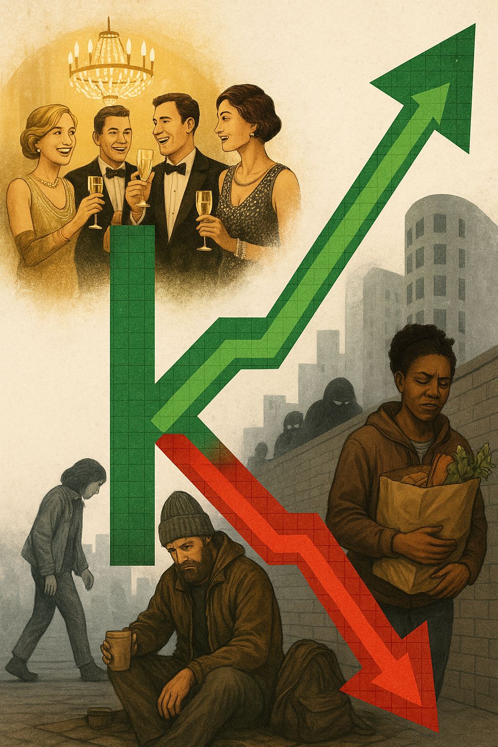 Durante la pandemia nació el término “economía en forma de ‘K’”: una línea hacia arriba (quienes trabajan desde oficinas y se benefician del mercado) y otra hacia abajo (quienes dependen de empleos presenciales o de bajos ingresos).