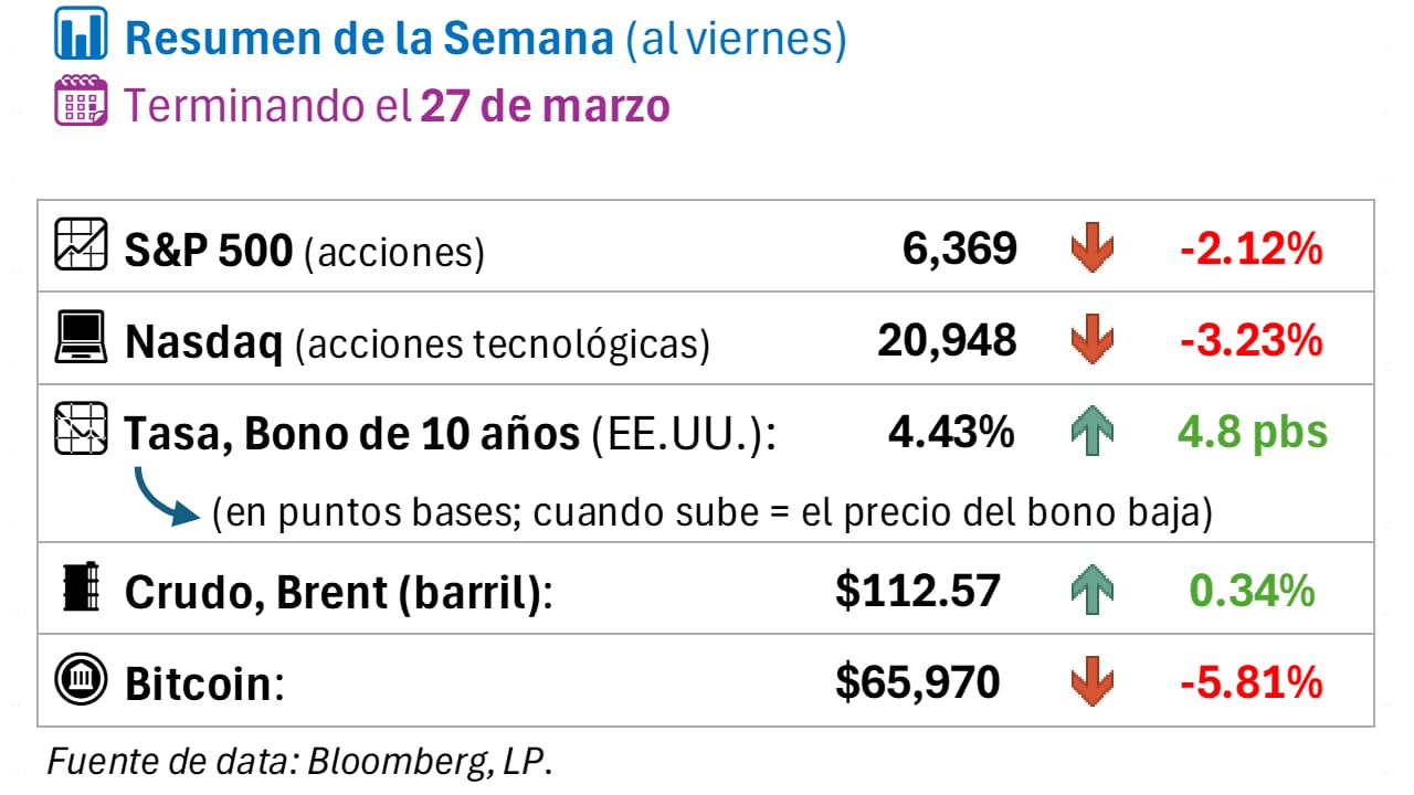 Lo que hace esta caída diferente: nada de lo que normalmente protege al inversionista está funcionando. Bonos, oro, Bitcoin — todos caen junto con las acciones, algo que no pasaba desde mayo de 2022. El Brent cerró en $112.57 y la gasolina en EE.UU. ronda $4 por galón — nivel que históricamente cambia el comportamiento del consumidor y enciende alarmas en Washington.